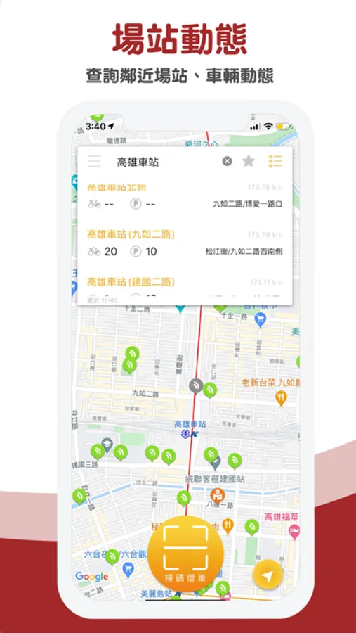 下載YouBike 2.0 APP讓您即時掌握完整功能:快速註冊會員、交易紀錄查詢、會員卡片管理、即時場站動態查詢、公共自行車傷害險資料編輯…等等。