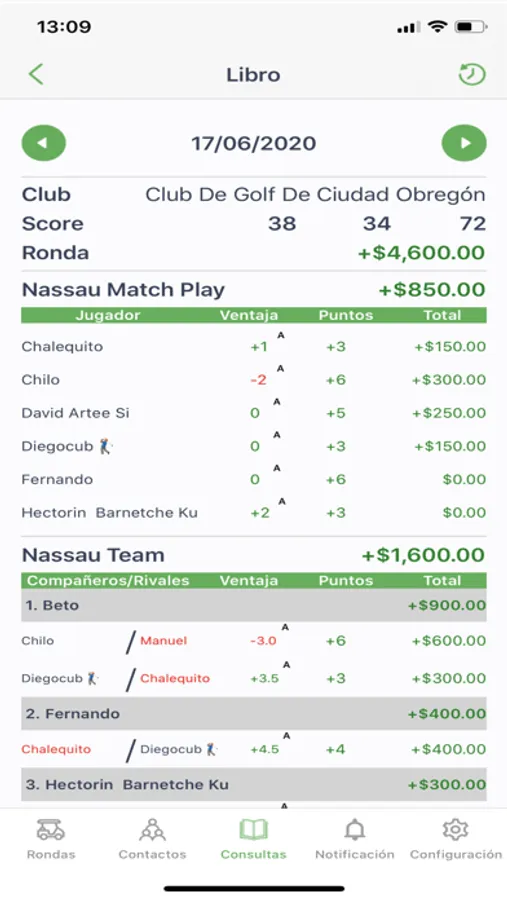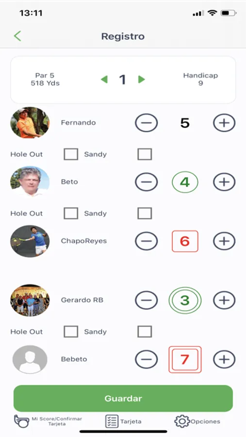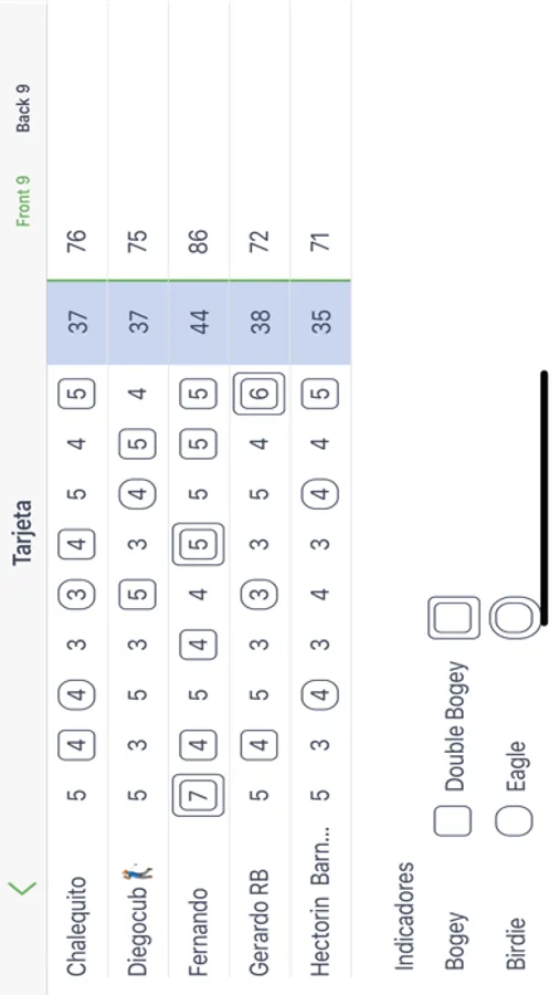 HandicApp GBB te brinda toda la información que necesitas en cada hoyo, los jugadores registran su score y demás conceptos logrados, durante la ronda puedes consultar tu avance personal, el de tu equipo y las estadísticas acumuladas.