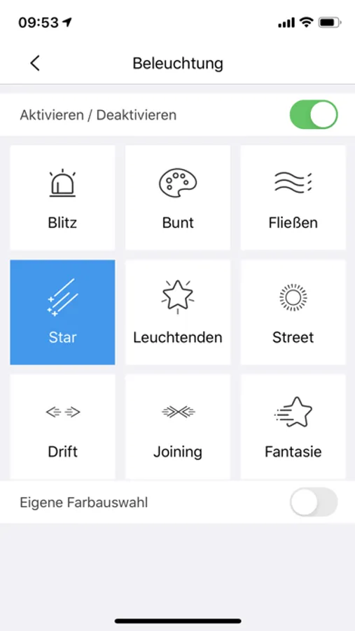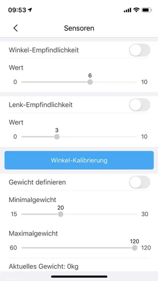 (Geschwindigkeit, Sensitivität, Beleuchtung etc.)
