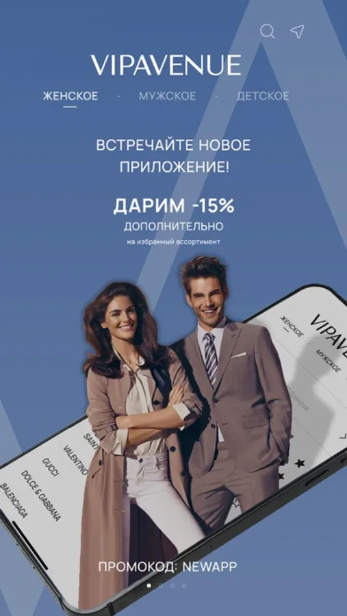 Загрузите новое приложение VIPAVENUE и наслаждайтесь комфортным шопингом онлайн в любом месте и в любое удобное для Вас время.
