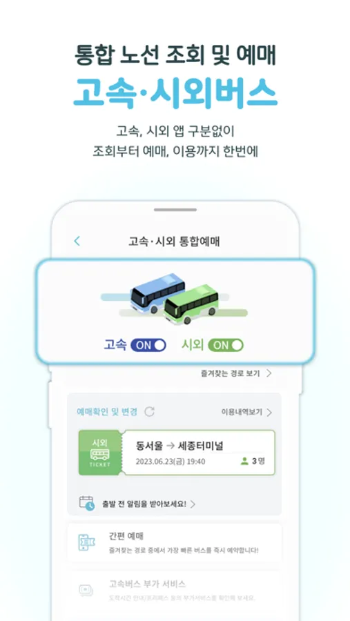 · 전국 최초로 고속버스, 시외버스에 대한 노선 조회, 예매, 이용이 하나의 앱 티머니GO에서 가능합니다.