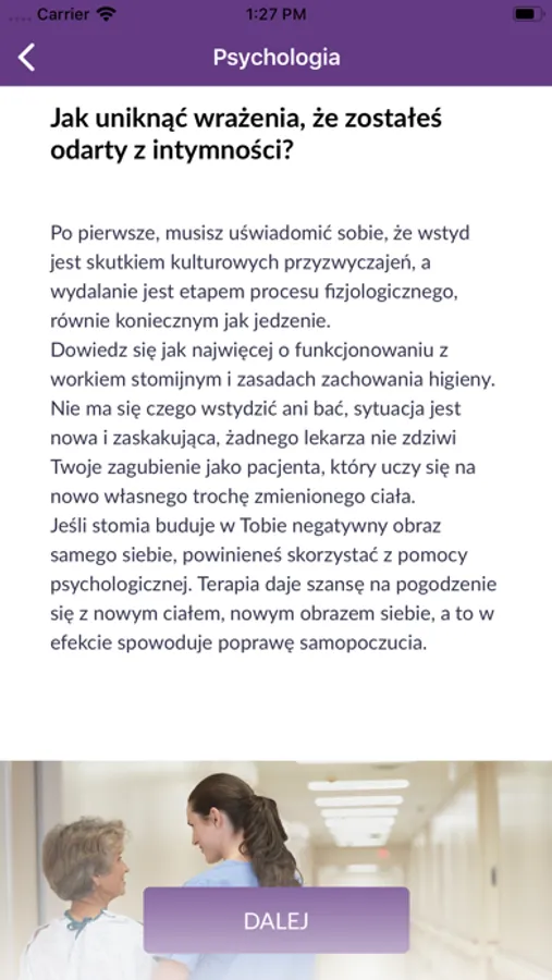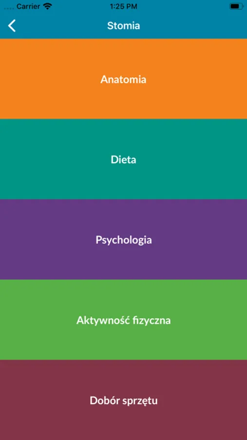 Stomijna część edukacyjna dla pacjenta zawiera informacje podzielone na 5 części: