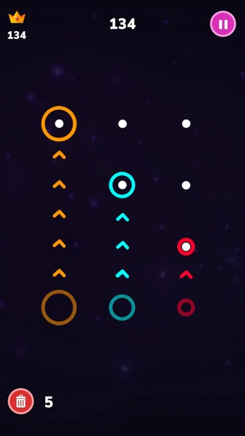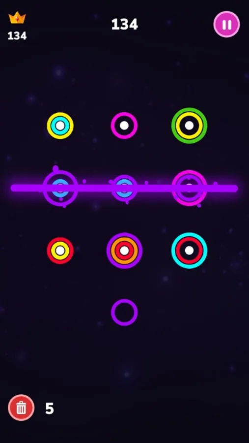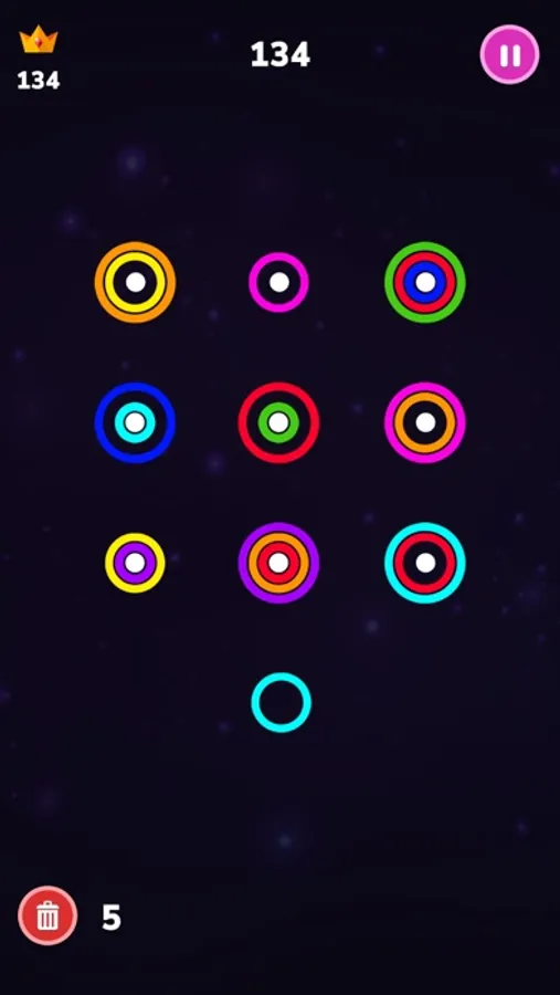 Infinity Ring game is an addictive, marvelous minimalist game.Arrange the same color ring in a diagonally or a vertically or a horizontally straight line to destroy them.The game ends when there is no space left to put any ring. Match lines of the same color rings. You can place a small or medium circle in a bigger one.