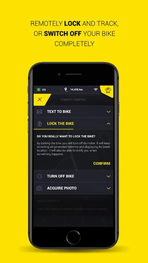 Control your bike remotely, check its current status or gain insight into the info your bike generated. It allows you to: