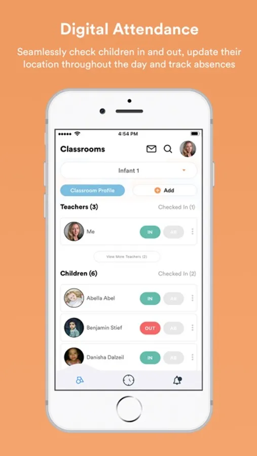 * Use digital attendance: Track children's attendance and transitions to other classrooms or the playground