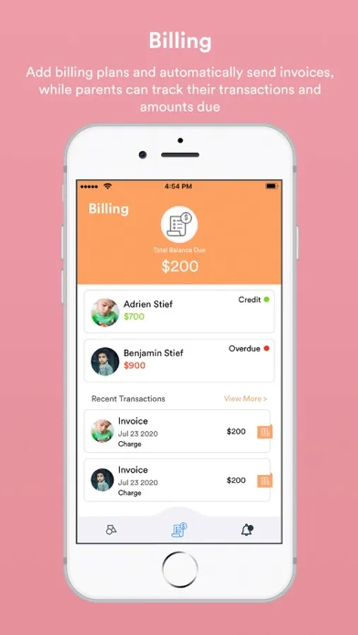 * Setup your center: Customize your center profile, add classrooms and billing information/fees