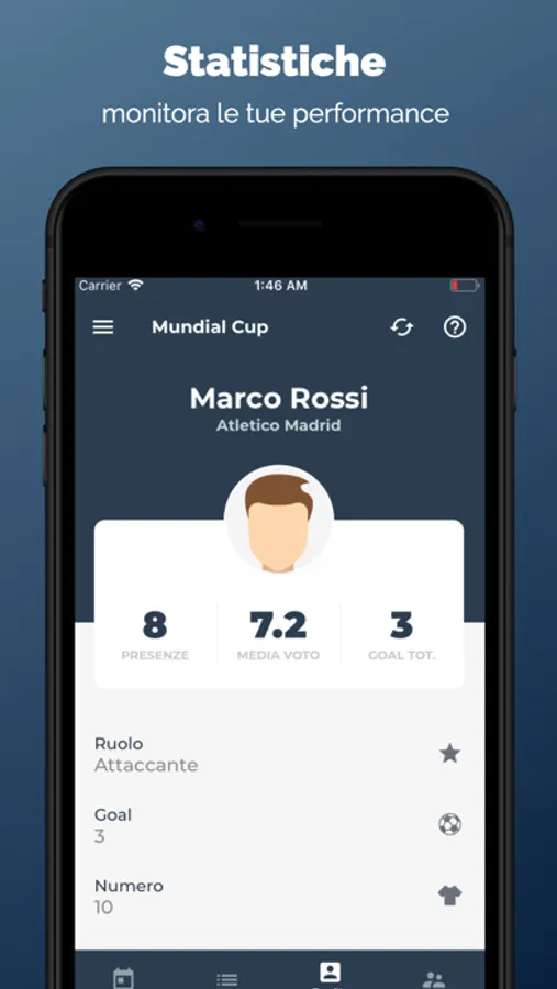A partire dalla fase di iscrizione e registrazione dati del giocatore, passando per l' inserimento risultati e dettagli di ogni partita, fino alla gestione dei dati sotto forma di statistiche, mundial renderà l' esperienza del giocatore il più coinvolgente possible, tenendolo aggiornato costantemente sull' andamento della propria squadra, delle proprie prestazione e dell' andamento del torneo.