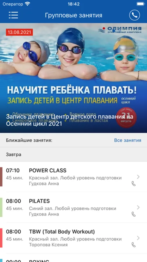 С помощью приложения вы можете следить за новостями, расписанием клубов, оперативно получать информацию об изменениях в расписании и специальных предложениях