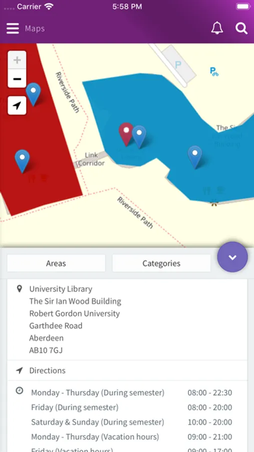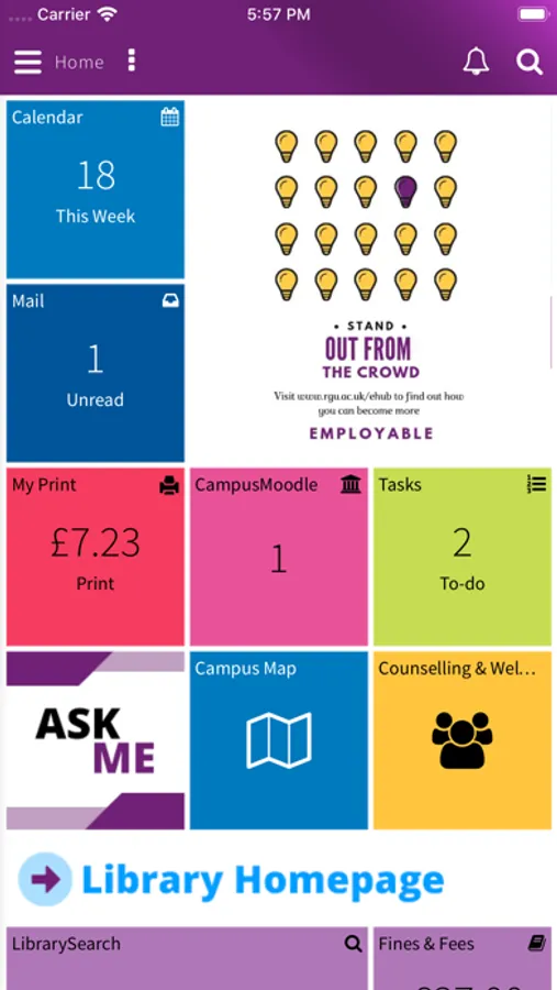 • Moodle integration – provides details of your assignments and courses, as well as notification of assignment deadlines and grades.