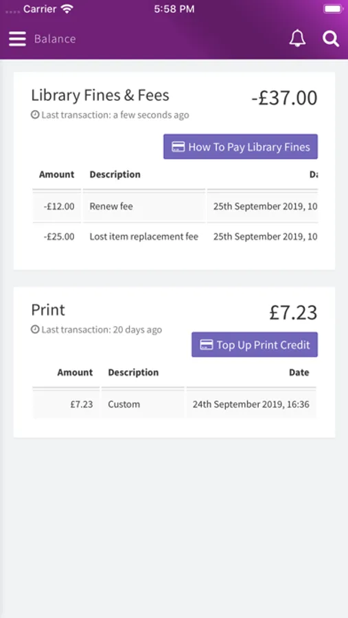 • Balances – you can check how much print credit you have.