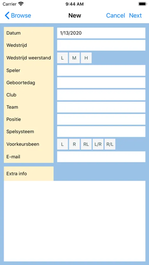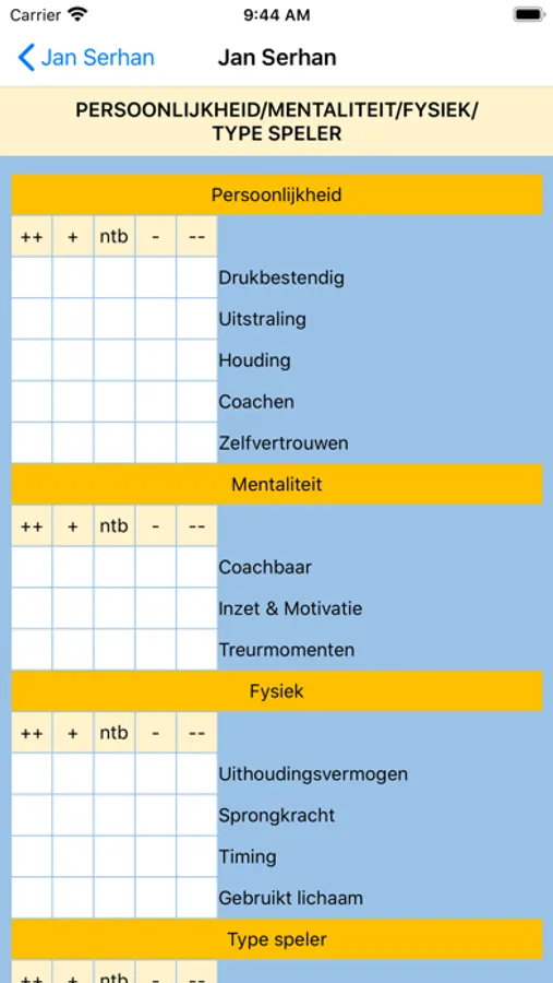 After our first scouting Booklet (A6 size), we created a second one and now there's an App with the same cosmetics. Especially made for the Scouts who need a simple way of working when you are viewing at the sideline. it's very easy to get nice players reports.