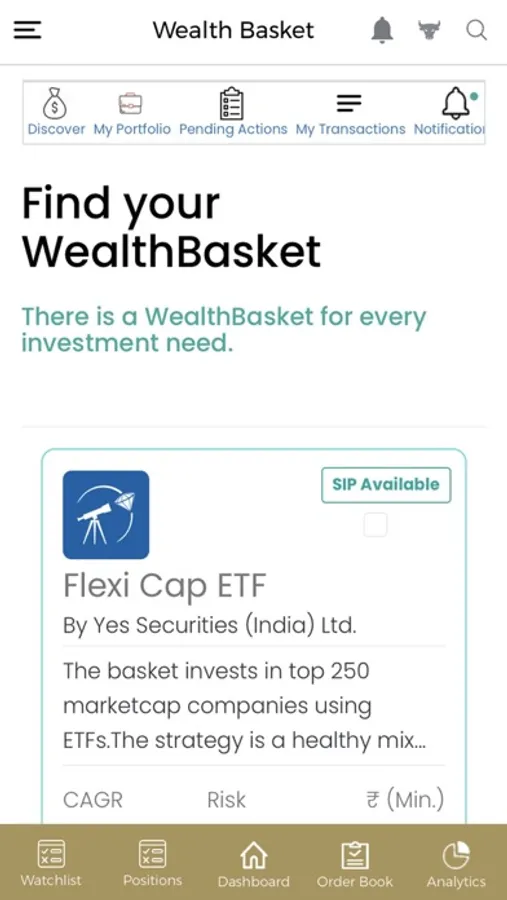 8.Thematic Wealth Basket – Invest in well researched Thematic Baskets that has a proven track record of delivering with consistent returns along with Live portfolio tracking & one click rebalancing.