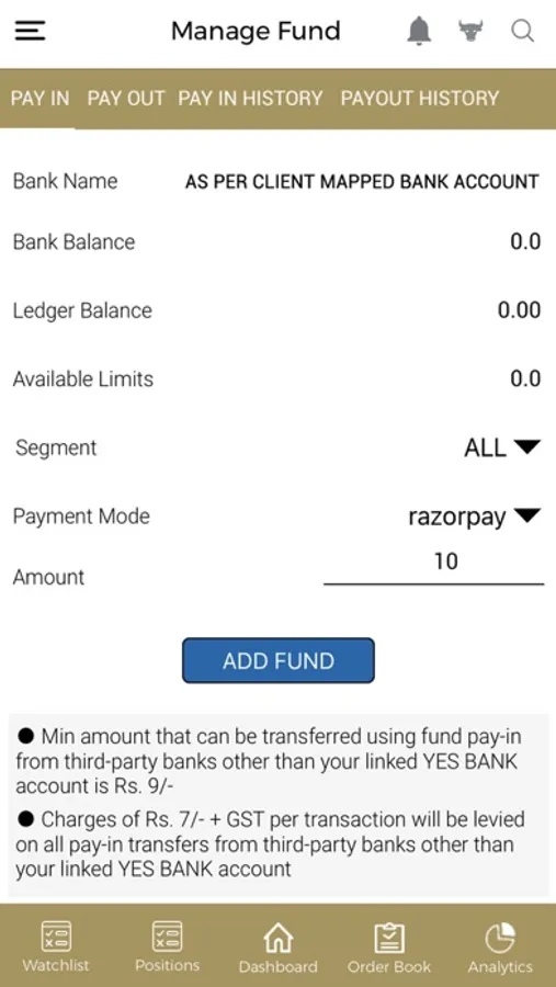 7.Secured Fund Transfer: With quick and easy interface, we have your back to overcome any shortage of funds for uninterrupted trading experience. The funds reflect instantly once the ‘PAY-IN’ is done.