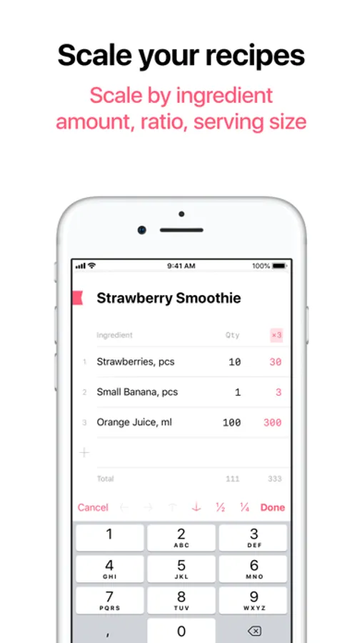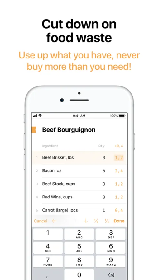 – Waste not, want not: Recalculate recipes based on the ingredients you already have at home.