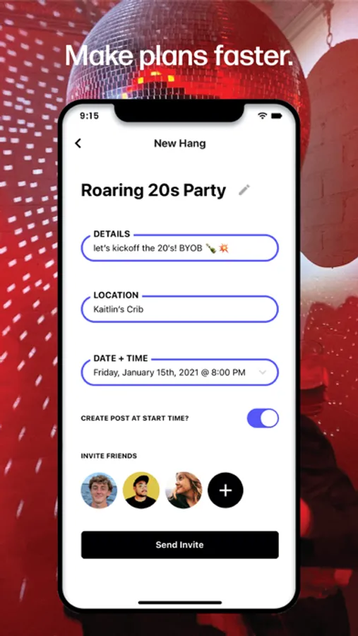 Hang helps you make plans, tells you who is going, creates a unique group chat for every hangout, and lets you share live moments from your experiences.
