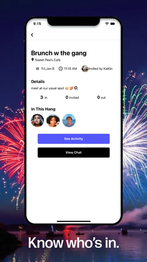 ■ Find out who's going in just one click by tapping into your scheduled Hangs.