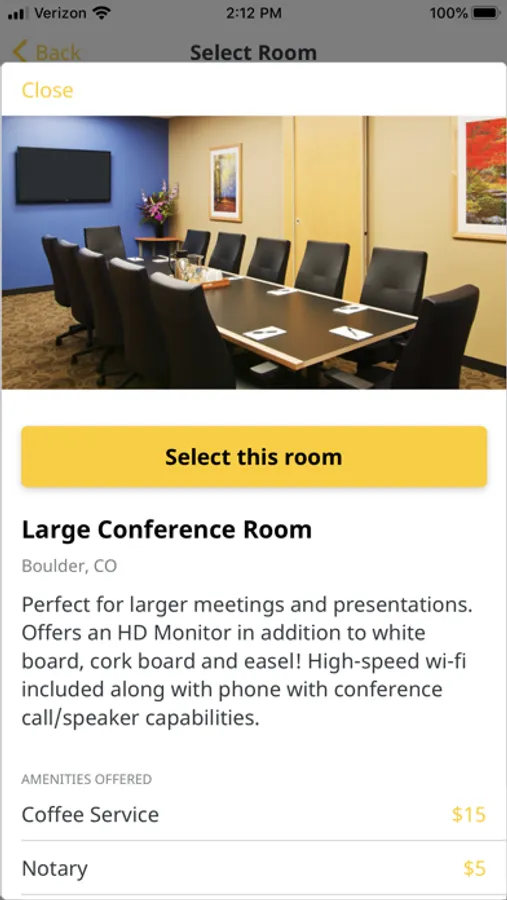 Intelligent Office helps businesses solve the issues they face every day, namely, finding convenient, secure, & professional work spaces. This app allows users to book a room right from the app as a guest or a member. Members new & old will love this convenient way to schedule & purchase meeting spaces. Each room has a listing of amenities to choose from that allows our user to customize their experience. Everything from witnesses to an in-room projector can be added depending on the room. Intelligent Offices rooms range from small spaces, perfect for one on one meetings, to large spaces, perfect for collaboration. The design is intuitive yet comprehensive. Users can see a listing of all past, future, & canceled bookings to make managing your spaces easy. Find our professional service and flexible workspace solutions at a virtual office near you! With this app, Intelligent Office introduces a new way to enhance your business!