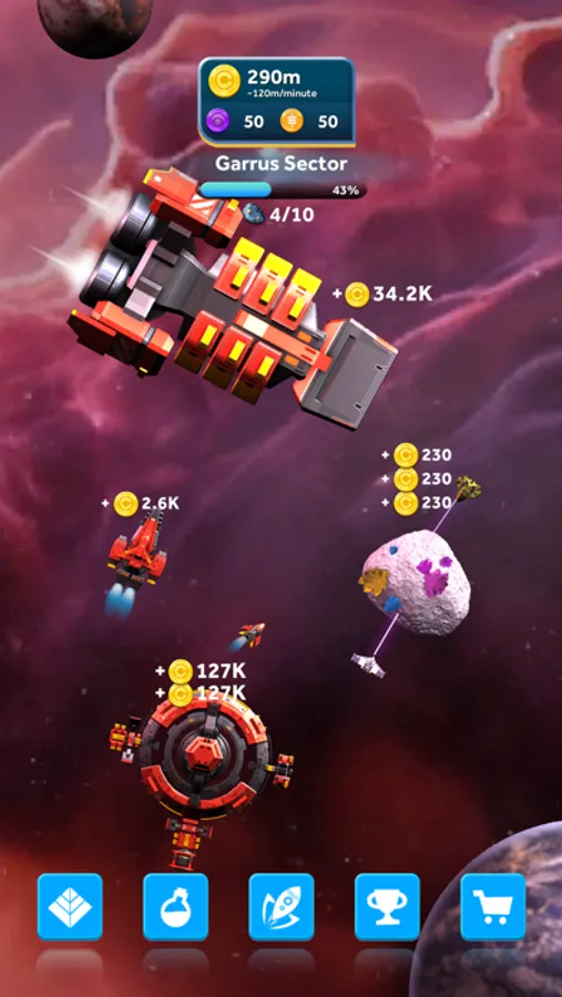 Mining asteroids becomes your lifeline in this vast and uncharted cosmic expanse. Utilizing idle mechanics, you'll set your crew to work while you're away, gathering resources that power your ship and enable you to discover new areas. As you upgrade your mining equipment and technologies, you'll be able to access more valuable resources, uncover hidden paths, and face greater challenges.