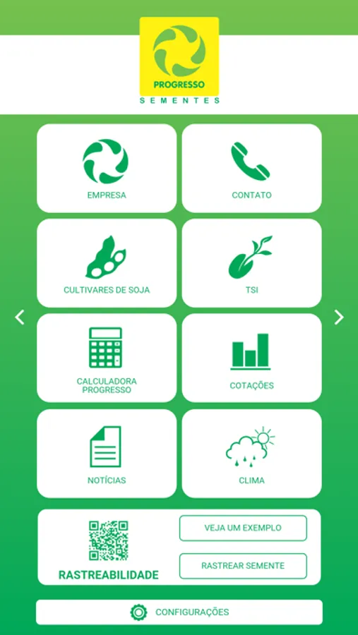 O aplicativo da Sementes Progresso conta com várias funcionalidades que facilitam o seu dia-a-dia. O portfólio de cultivares de soja com as características de cada cultivar, resistência às doenças e época de semeadura por macrorregião. Já a Calculadora Progresso permite que a partir de dados como germinação, pureza e PMS, seja gerada uma sugestão de plantabilidade da semente adquirida. A função da rastreabilidade possibilita consultar informações detalhadas sobre o processo de produção e características do lote de sementes, ajudando nas escolhas para sua lavoura e no aumento da produtividade. Além disso, no nosso app você ainda pode conferir os Tratamentos Industriais de Sementes disponíveis, notícias, cotações, clima, contatos da empresa e muito mais.