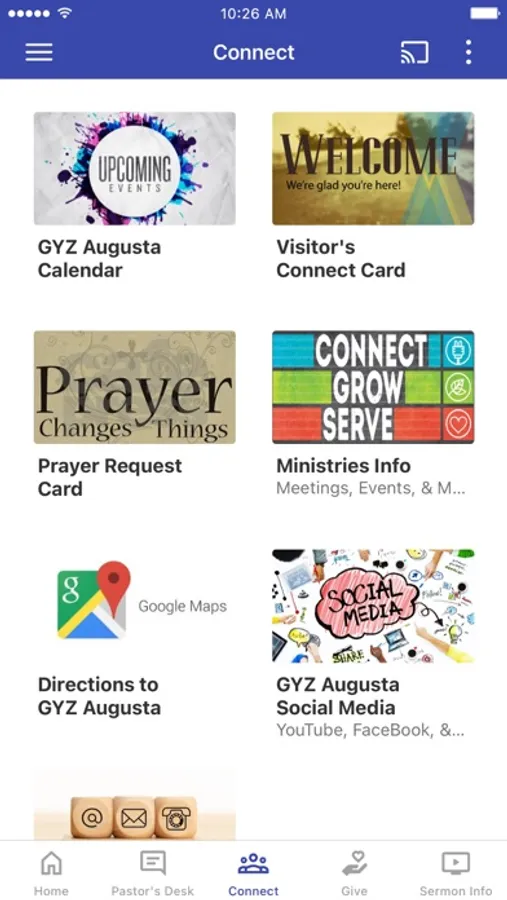 • Connect with Christian Education, Men, Women, Youth, Marriage and Singles Ministries with access to all upcoming meeting and events info.