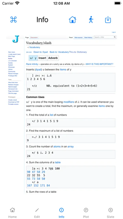 Like all J IDEs, this iOS app is offered free of charge as a learning resource for teachers and students of mathematics, statistics, science and engineering. It is also offered without guarantee as a convenience to J experts who normally use a desktop computer for their professional work. Fine-tuned to the iPad, but usable on iPhone, it is first and foremost a vehicle for fun and discovery.