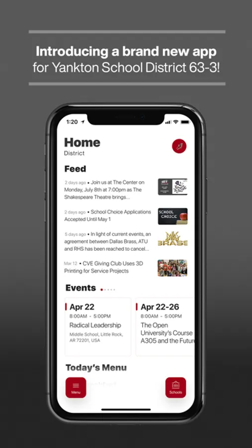 The event section shows a list of events throughout the district. Users can add an event to your calendar to share the event with friends and family with one tap.