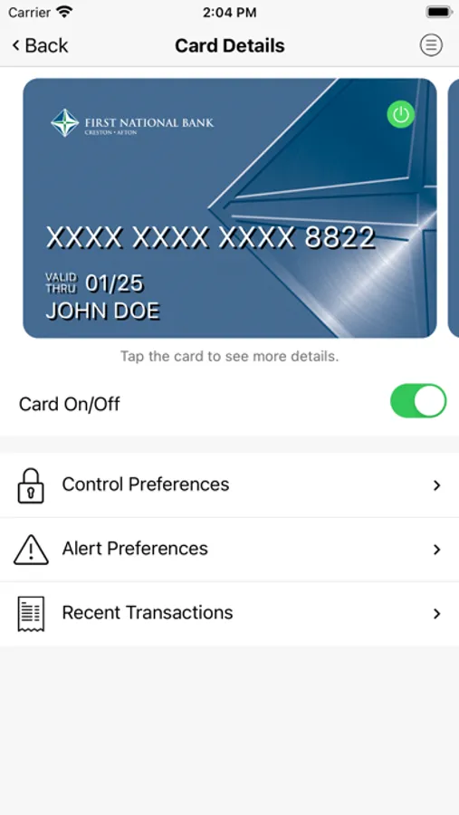 First National Bank helps protect your debit and credit cards by sending transaction alerts and giving you the ability to define when, where and how your cards are used. Simply download the app to your smartphone, then customize your alert preferences and usage settings to monitor and manage your cards.