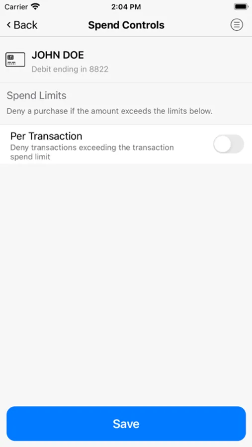 Spending limits can be established to allow transactions up to a certain dollar value and decline transactions when amounts exceed your defined thresholds. Transaction can be monitored and managed for specific merchant categories such as gas stations, department stores, restaurants, entertainment, travel and groceries. And your transaction can also be monitored for specific transaction types in store purchases, e-commerce transactions, mail/phone orders and ATM transactions