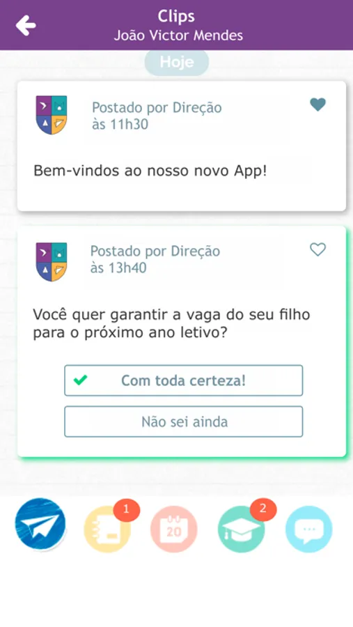 Baixem o aplicativo e fiquem ligados nos Clips enviados! Não deixem de conferir, também, a Agenda de Recados e o Calendário.