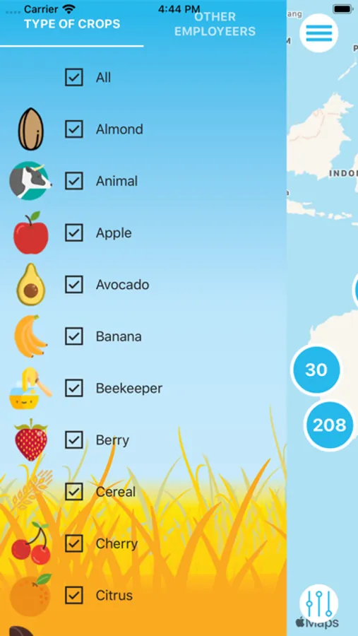 The app also allows you to use filters. If you are looking to work in a specific area or to pick a specific type of fruit during a specific time, you can do that!