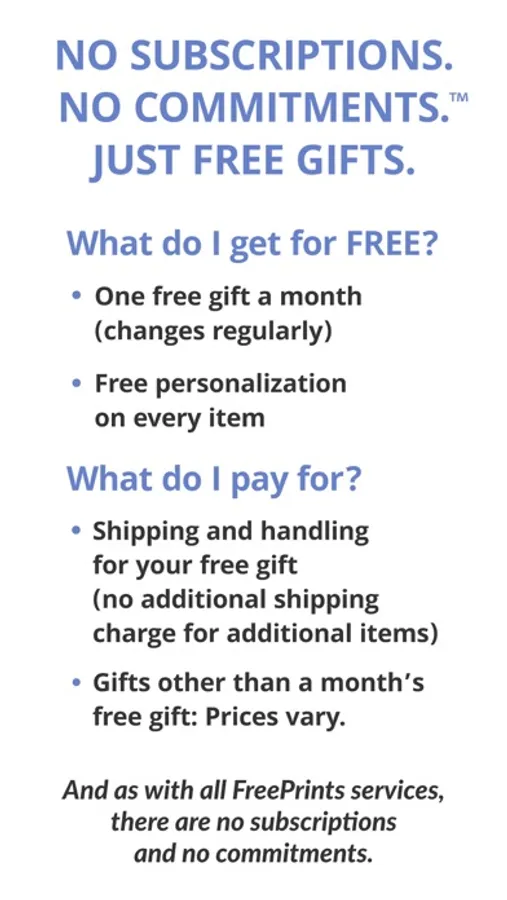 And as with all FreePrints services, there are no subscriptions and no commitments.