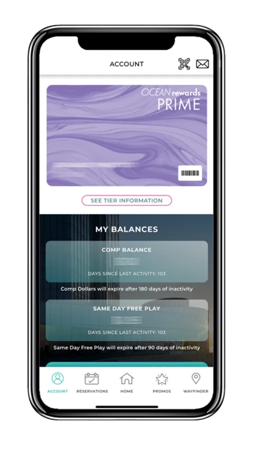 Get access to everything, right in the Ocean Mobile App. Ocean Rewards Members can conveniently book casino hotel offers, view tier status, balances and more! Get exclusive access to our slot finder, and enjoy the interactive map to easily navigate the Casino floor. The Ocean Mobile App is the easiest and fastest way to make the most out of every trip.