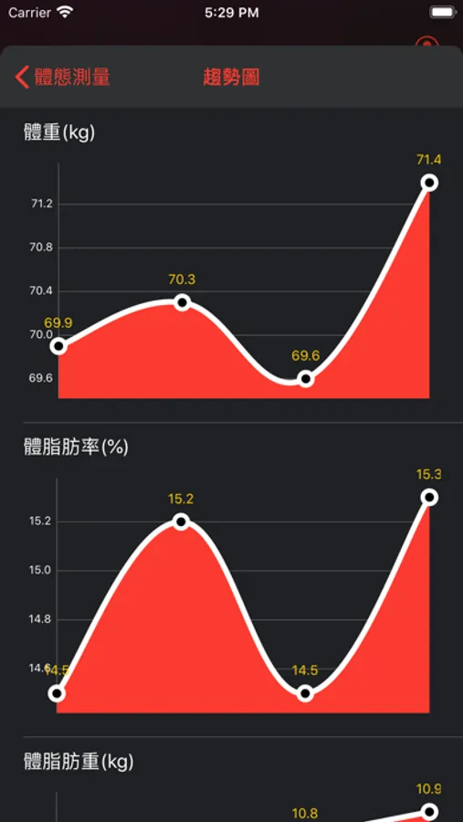 • 可查詢Inbody檢測紀錄及趨勢圖