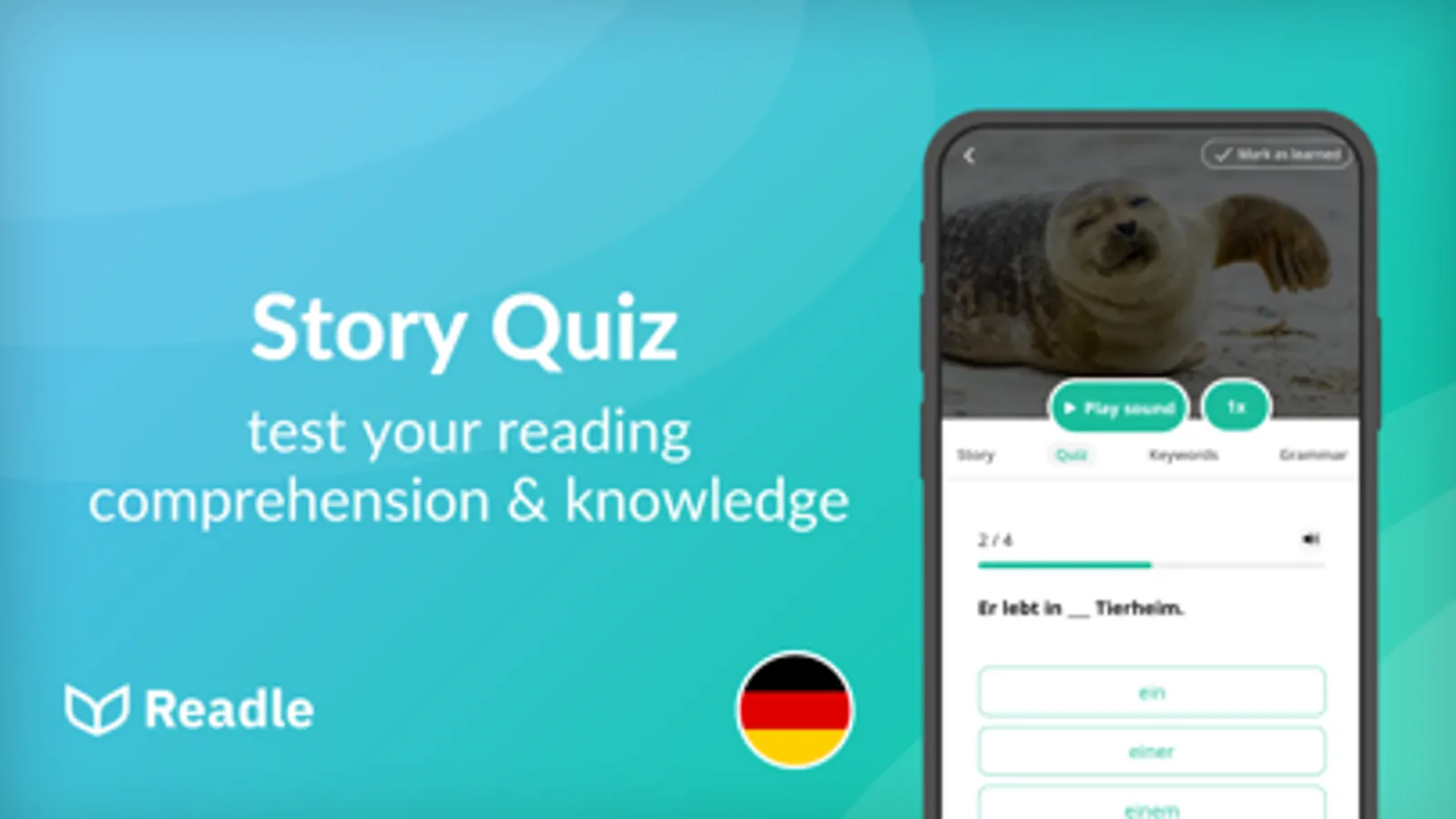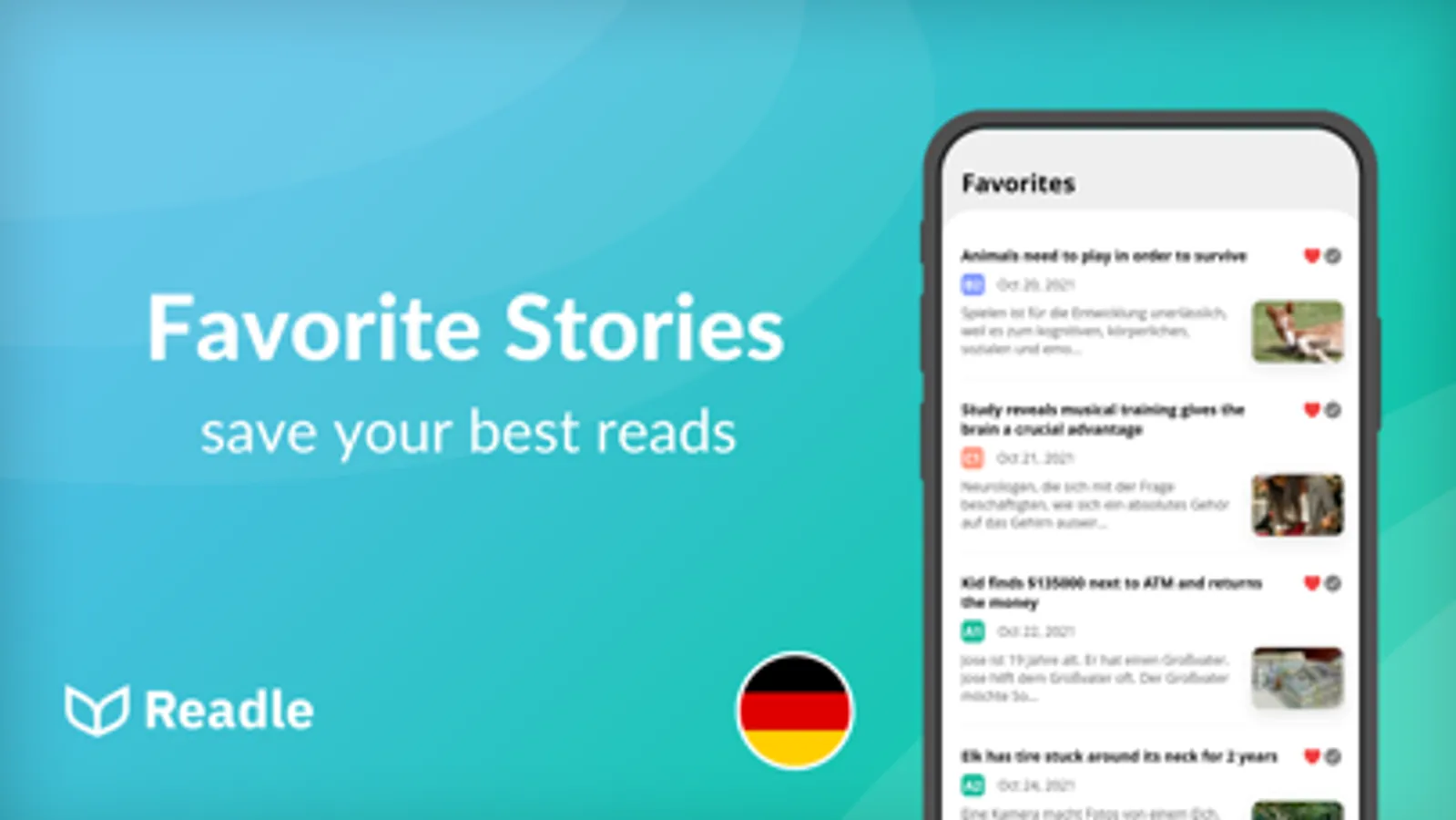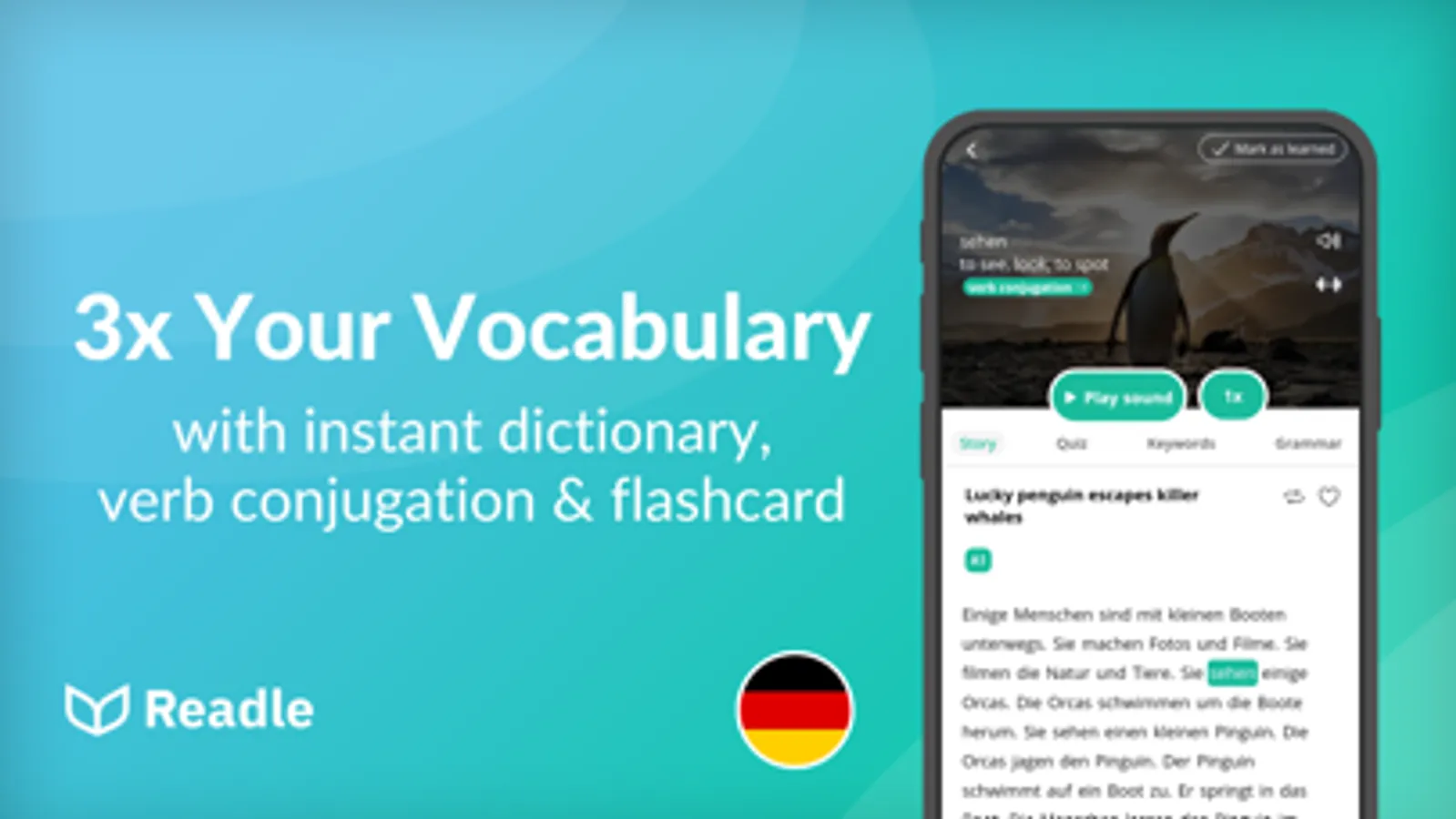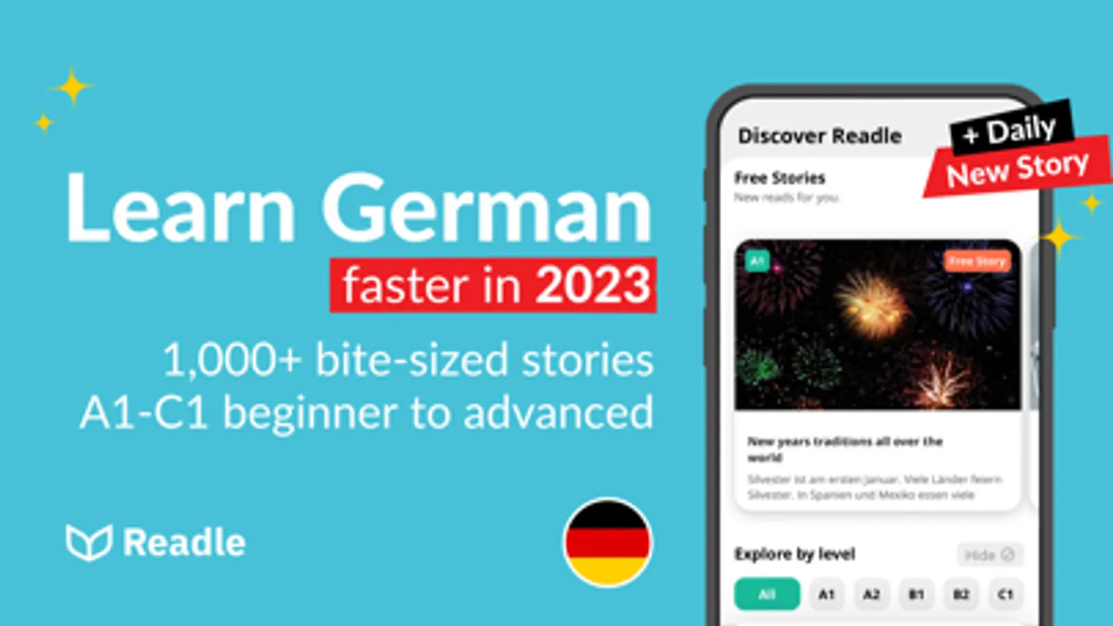 Rapid learning with a new method - try the first German Graded Reader "Readle". A unique German language learning app with 1,000+ bite-sized Stories & News to learn German vocabulary and grammar! Easily read, listen, and learn German anytime anywhere for just 5 minutes a day - the fastest way to improve your German level from A1 to C1.