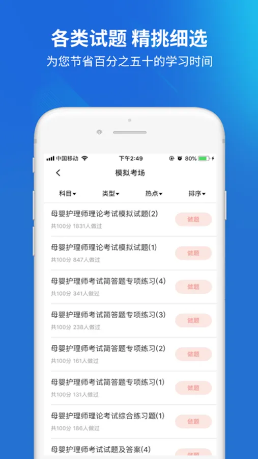 月嫂证题库是一款针对月嫂证考试的题库,包含了月嫂证考试大纲所确定的范围。题库中的试题全真模拟真实的考试,是各位考生学习乃至通过考试的好帮手。