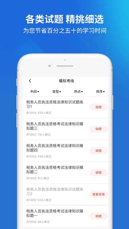 税务执法题库有模拟考场、历年真题练习、每日一练、快速练习、考点练习、考试押题、做题记录等多种学习与做题模式、丰富多样化的陪你一起考税务执法考试。