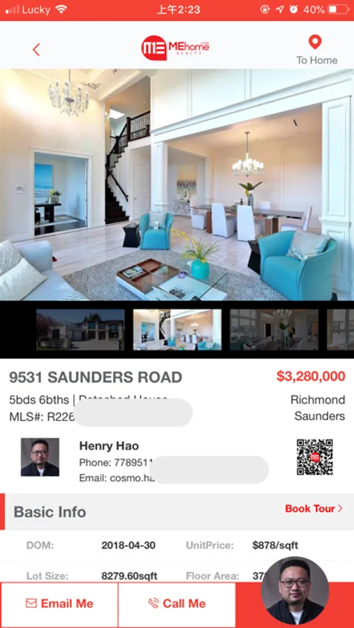 If you have questions or want a tour of the home for sale, press the “Contact” feature to call or email a MEHome representative who can assist you.