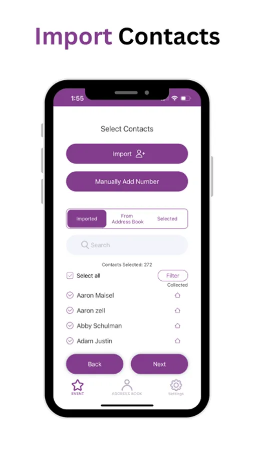 Here's how it works: After sending your mass text, your guests receive a text containing your custom message and an Address Collection Link. Your guests can then click on the Link and fill in their address, contact information, and RSVP (optional) using our customized user-friendly form. The best part? All the addresses are organized neatly within the app, ready to export for cards and invitations or simply to use as your go-to address book.