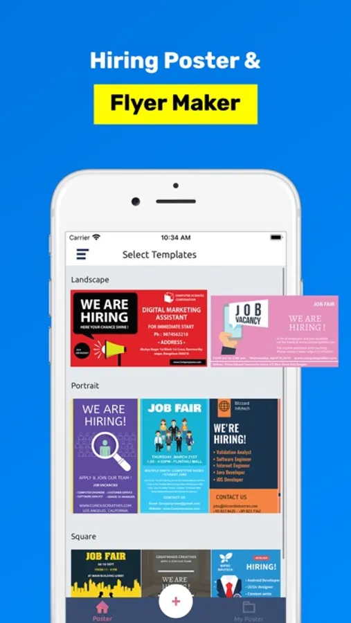 Hiring Poster and Flyer Maker app is a profound app specially designed for iOS users to facilitate them with the best user experience for dealing with the creation of Hiring Posters and Flyers. The app consists of a huge collection of hiring poster and flyer templates, background frames, text effects, stickers, shapes, etc that enable the user to accurately elucidate the hiring stand. It is easy to install and operate the Hiring Poster and Flyer Maker app. The Hiring Poster and Flyer Maker app carries out quick click executions and is effective and efficient in its functioning.