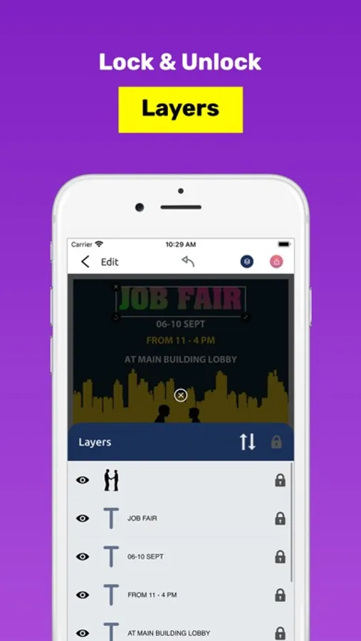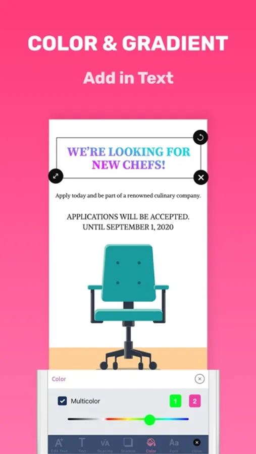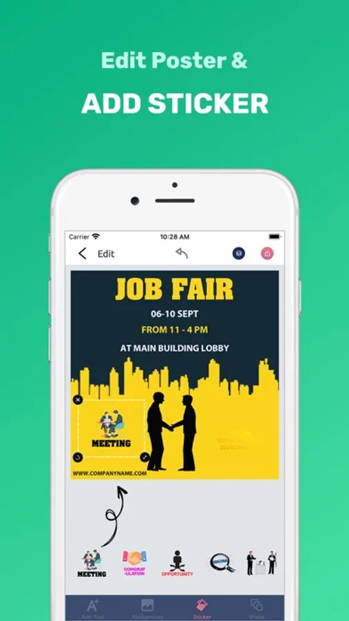 - Implant a relevant and soothing background from the phone memory or the various inbuilt background made available by the Hiring Poster and Flyer app that gives a professional vibe.