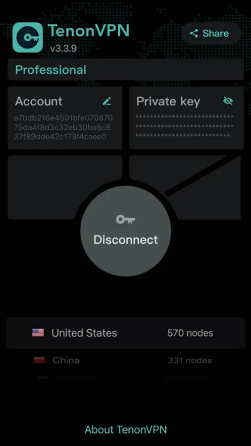 Easy: Tenon VPN is easy to use, requires no complicated configuration, and can be safely, quickly and reliably entered into the decentralized world with one-click connection.