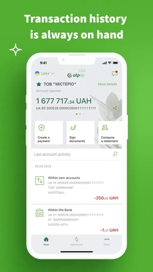 Click OTPay is mobile banking for legal entities and entrepreneurs in your smartphone. Business management is always in your hands thanks to the OTP Bank application.