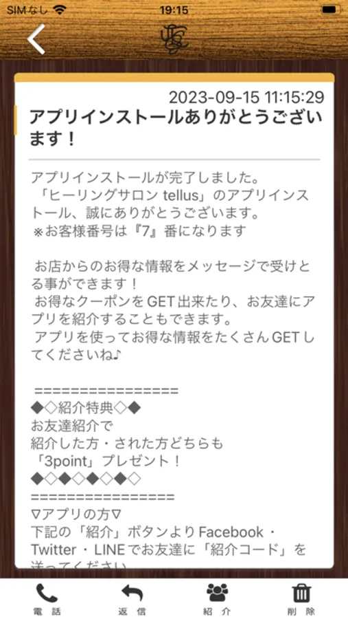 tellusのアプリをSNSを通じてお友達に紹介する事ができます。