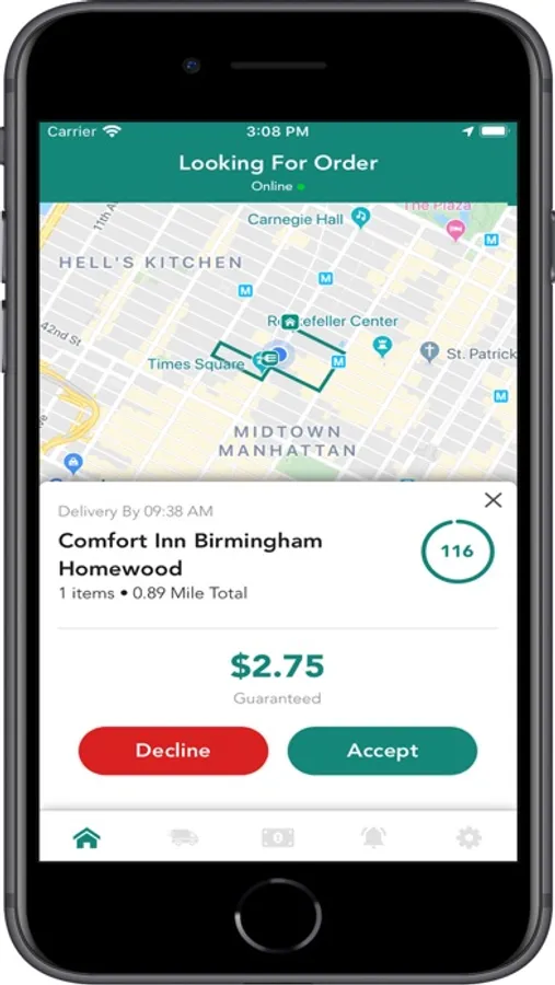 When customers place an order, our app offers the deliveries to drivers, who earn money by picking up and delivering them.