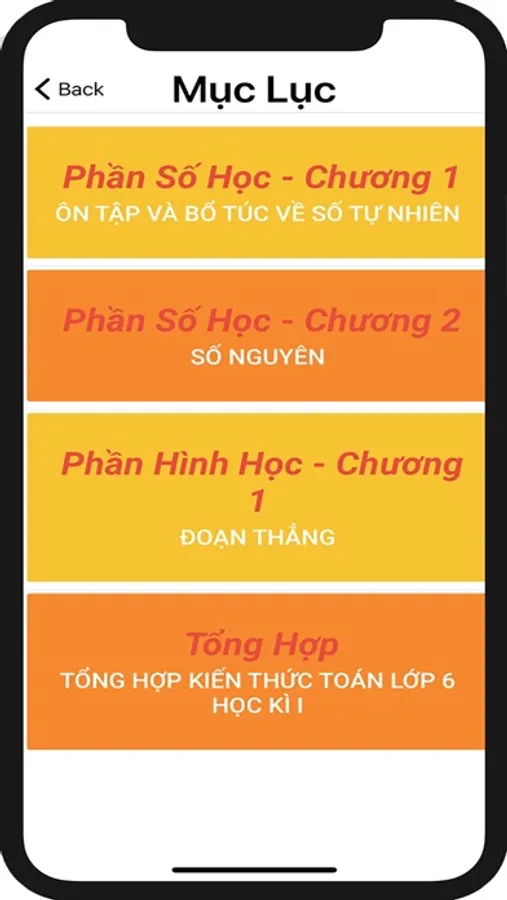 • TOÁN LỚP 6 hiển thị nội dung của từng bài học trong sách.