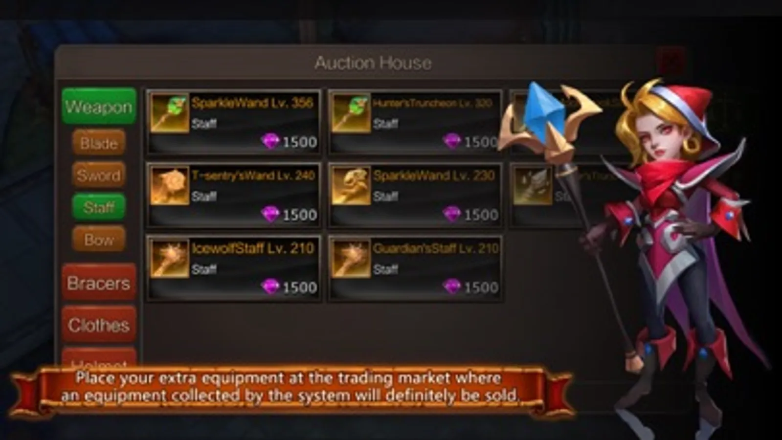 Trade: rare equipment can be bought in the system after its auction is failed and please be assured to purchase