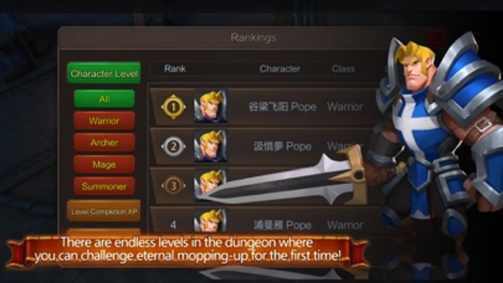 Guild: get a great number of equipment and gift bag rewards by getting high placing of the guild leader, instance and damage ranking list. Fight for the ranking awards with your playmates