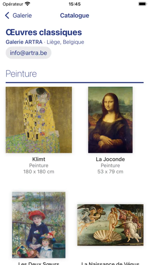 Thanks to ARTRA, any two-dimensional creation (painting, photography, etc.) can be hung on walls virtually. Through the screen of his iPhone or iPad, the art lover can judge how an artwork will look in his home, as if it were really there. This enables them to buy the most suitable work for their home.