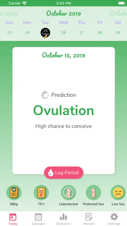 App is very useful, when you have irregular periods or regular periods or predict your period. It can track your chance of pregnancy every day.