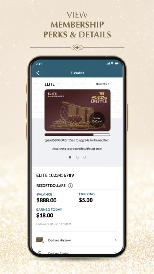 Keep track of your Sands Reward Dollars balance on the go as you earn and redeem with your Sands Rewards e-Card.